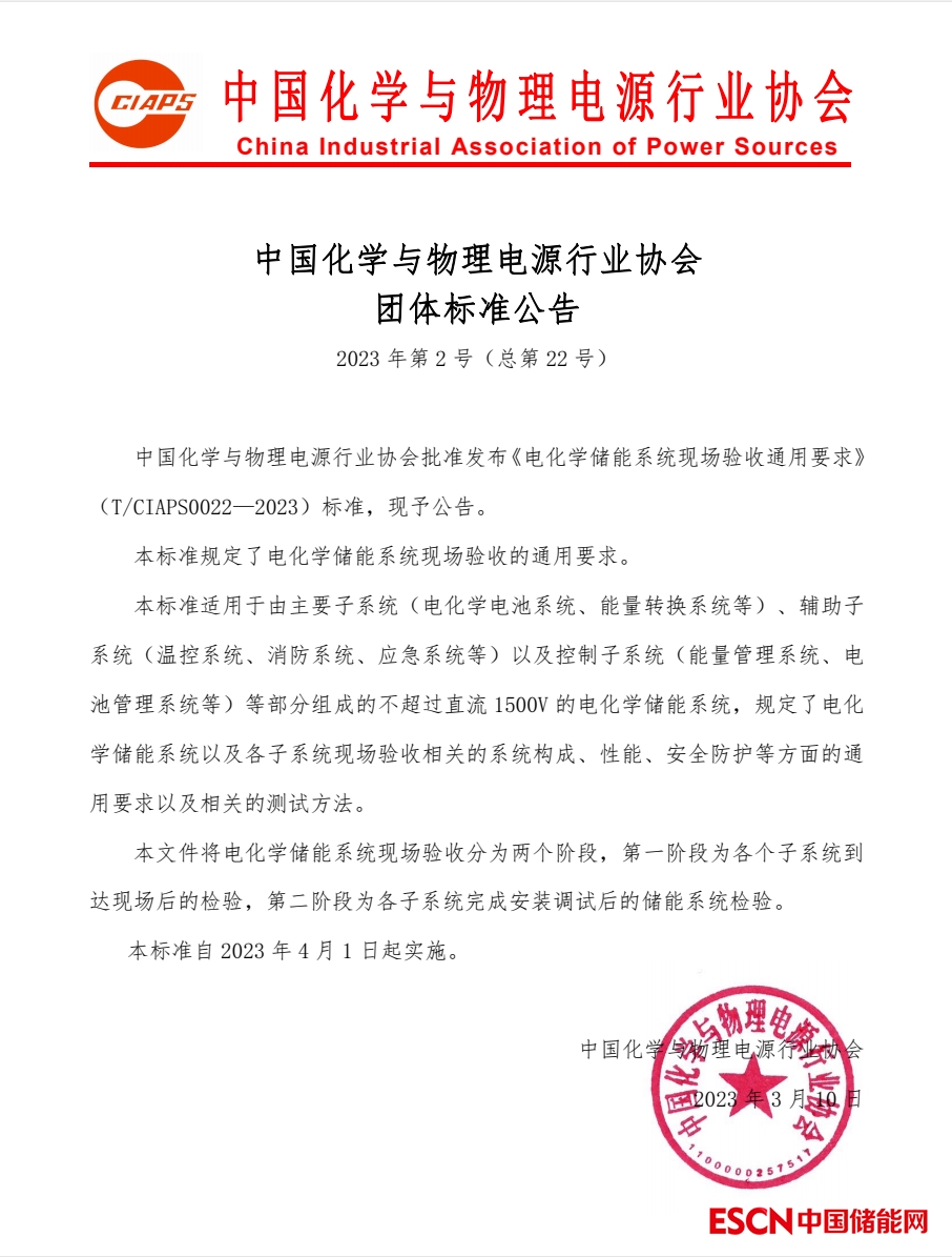 中國儲(chǔ)能網(wǎng)訊:3月23日,中國化學(xué)與物理電源行業(yè)協(xié)會(huì)團(tuán)體標(biāo)準(zhǔn)(以下簡稱“團(tuán)標(biāo)”)《電化學(xué)儲(chǔ)能系統(tǒng)現(xiàn)場驗(yàn)收通用要求》(T/CIAPS0022—2023)在蘇州隆重舉行發(fā)布儀式,標(biāo)準(zhǔn)定于2023年4月1日起實(shí)施。作為重要的參編單位和儲(chǔ)能行業(yè)領(lǐng)軍企業(yè),科華數(shù)能應(yīng)邀出席發(fā)布儀式。