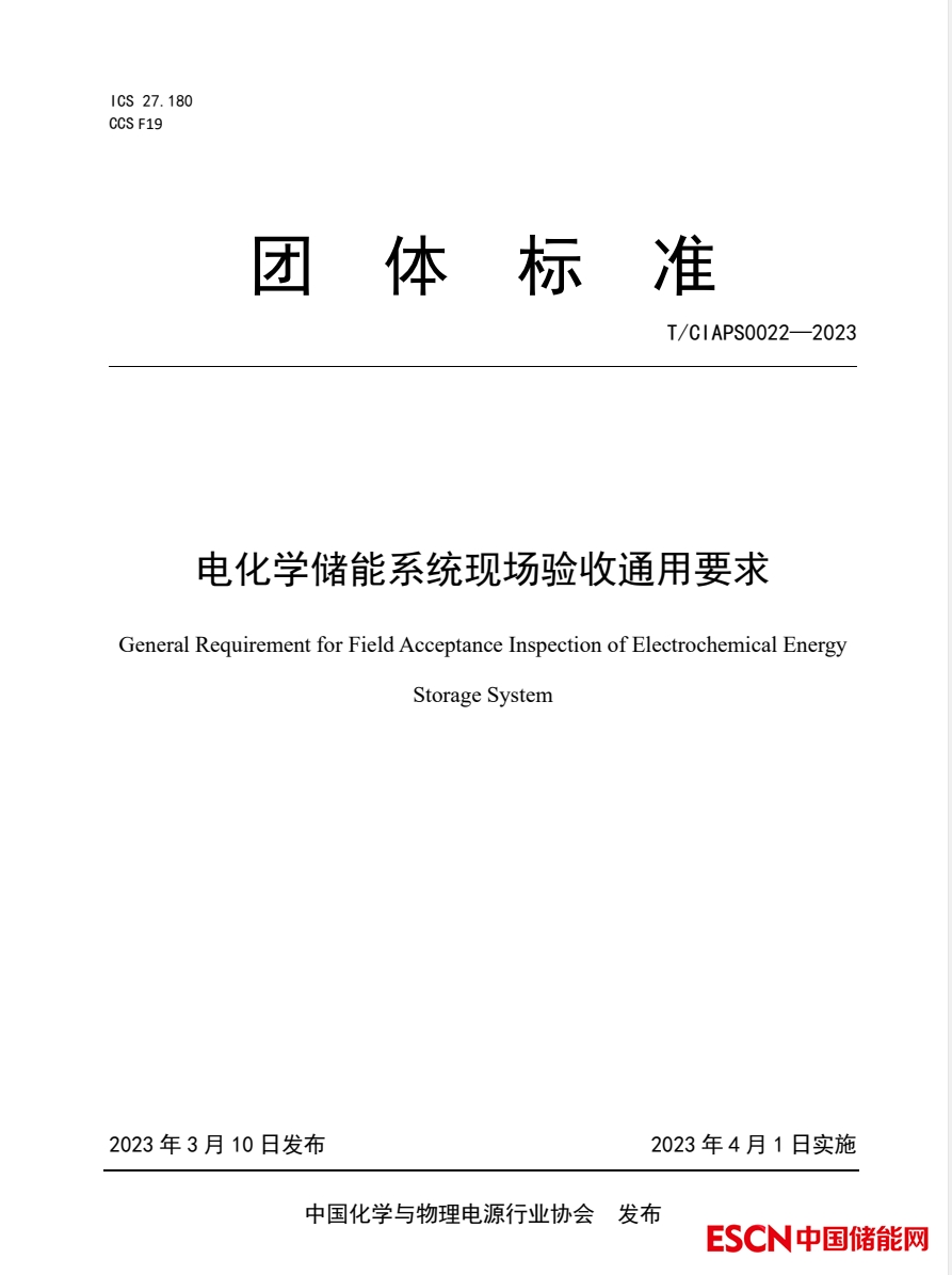 此次團(tuán)體標(biāo)準(zhǔn)規(guī)定了電化學(xué)儲(chǔ)能系統(tǒng)現(xiàn)場驗(yàn)收的通用要求,并從“范圍、規(guī)范性引用文件、術(shù)語和定義、環(huán)境條件、電化學(xué)儲(chǔ)能系統(tǒng)現(xiàn)場驗(yàn)收要求、電化學(xué)儲(chǔ)能系統(tǒng)現(xiàn)場驗(yàn)收檢驗(yàn)方法”六個(gè)維度進(jìn)行規(guī)范說明。