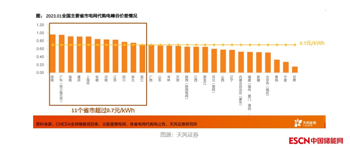 我國工商業(yè)當(dāng)前普遍實行分時電價政策和尖峰電價政策。發(fā)改委也以政策鼓勵支持10千伏及以上的工商業(yè)用戶直接參與電力市場,加速工商業(yè)儲能商業(yè)模式推進。而在2023年,我國工商業(yè)電價的調(diào)整讓工商業(yè)經(jīng)濟性得以大幅提升,具體包括峰谷價差拉大、時段調(diào)整等。