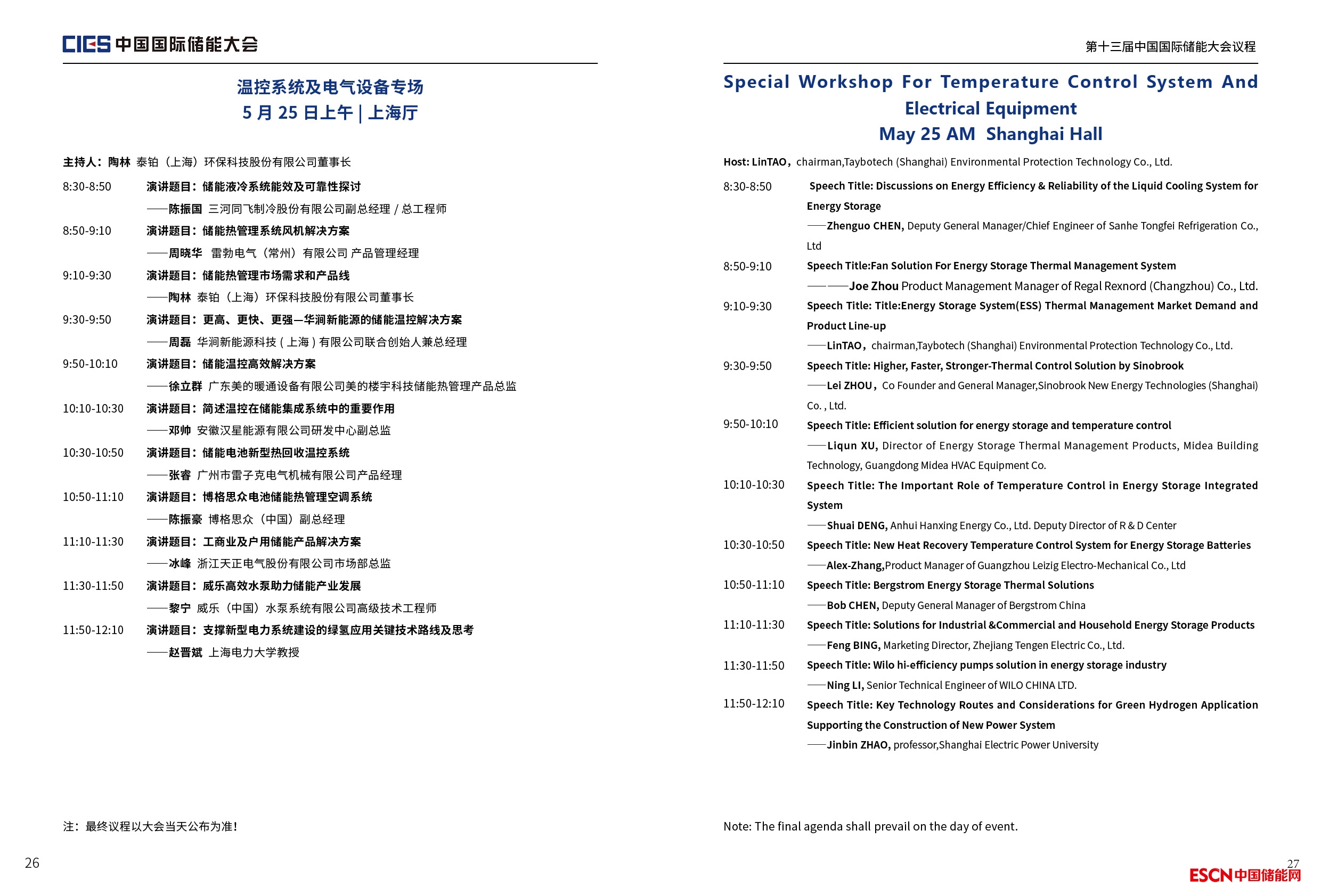 中國儲能網(wǎng)訊:由中國化學(xué)與物理電源行業(yè)協(xié)會主辦,中國化學(xué)與物理電源行業(yè)協(xié)會儲能應(yīng)用分會和中國儲能網(wǎng)聯(lián)合承辦,中國化學(xué)與物理電源行業(yè)協(xié)會儲能應(yīng)用分會專家委員會提供學(xué)術(shù)支持的第十三屆中國國際儲能大會將于2023年5月24-26日在杭州洲際酒店召開。以下為溫控系統(tǒng)及電氣設(shè)備專場專場議程(最終議程以活動當(dāng)天公布為準(zhǔn)):