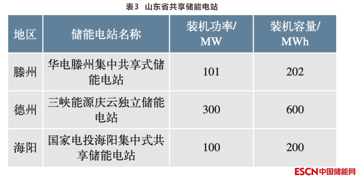 山東省共享儲(chǔ)能電站見(jiàn)表3。