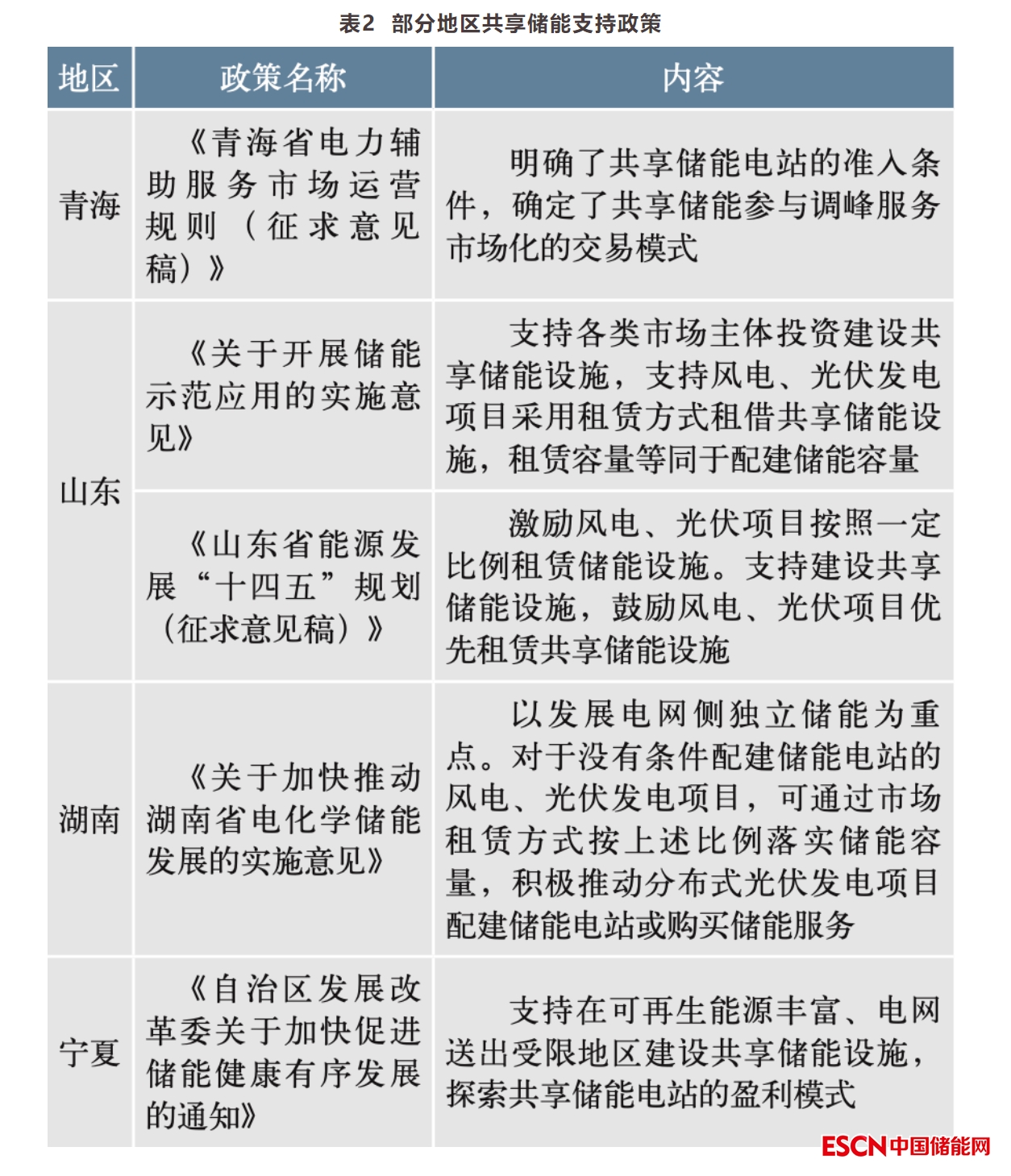 共享儲(chǔ)能支持政策見(jiàn)表2。