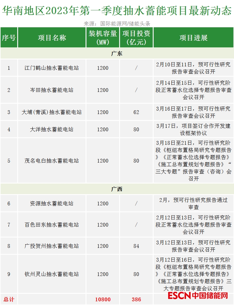 2023年一季度,華南地區(qū)有9個抽水蓄能電站更新了動態(tài),裝機總規(guī)模為10.8GW,項目總投資286億元。