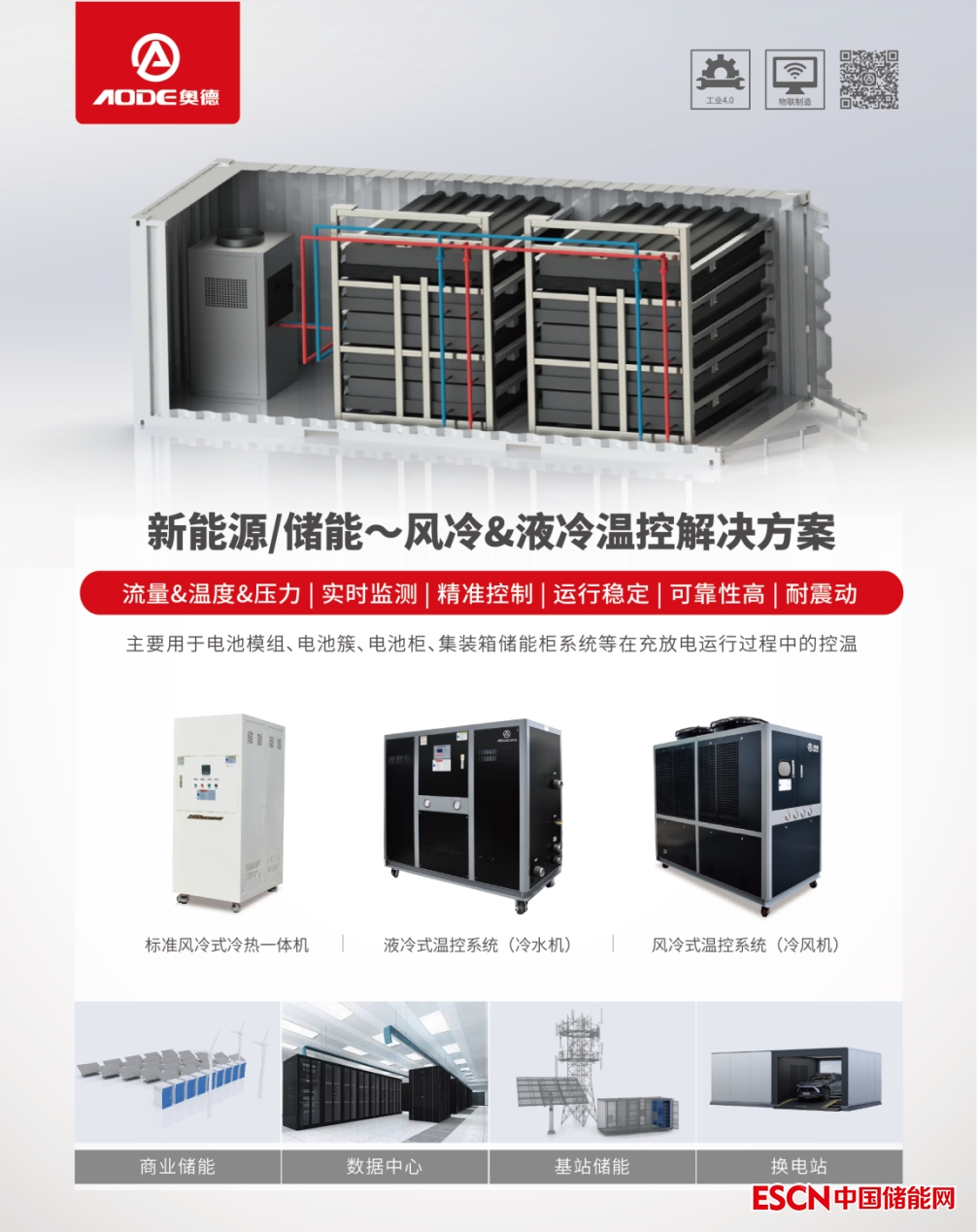 儲能電池工作中會持續(xù)性地釋放熱量,最佳工作溫度區(qū)間為10~35℃,當溫度低于-20℃時,電解液可能會凝固,從而阻礙鋰離子的流動,而當溫度超過 60℃時對電芯造成潛在破壞,嚴重時將引發(fā)著火爆炸安全事故。奧德依托近20年的工業(yè)溫度控制經驗、強大的研發(fā)和技術團隊,快速響應組建針對儲能行業(yè)的溫度控制系統(tǒng)解決方案的團隊,聚焦儲能安全,護航儲能產業(yè)穩(wěn)步發(fā)展,推出儲能行業(yè)風冷系列和液冷系列溫控產品,溫控范圍:-40℃~+60℃,采用國際一線品牌壓縮機,可實現(xiàn)智能化溫度調節(jié)和流量監(jiān)視,且產品結構緊湊、運行穩(wěn)定、耐震動、穩(wěn)定性高、安裝方便,主要應用于電池模組,電池簇,電池柜,集裝箱儲能柜系統(tǒng)等在充放電運行過程中的控溫,運用場景主要為:實驗室,大型儲能站、商業(yè)儲能、數(shù)據中心、汽車換電站等。