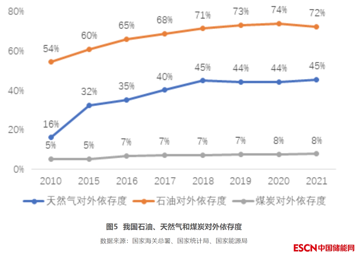 需要注意的是,繼2017年成為全球最大原油進口國之后,中國2018年超越日本成為全球最大的天然氣進口國。之后,我國油氣進口規(guī)模不斷增長,對外依存度持續(xù)增加,能源供應(yīng)安全風(fēng)險日益突出。在油氣領(lǐng)域,加強能耗“雙控”,加強電能替代和原材料替代具有重要的能源安全意義。