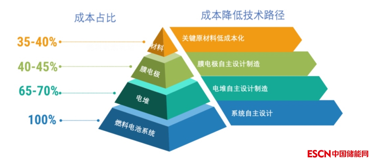 電堆是燃料電池系統(tǒng)中最關(guān)鍵的部件,其技術(shù)水平基本上決定了燃料電池系統(tǒng)的性能,成本占據(jù)了燃料電池系統(tǒng)的65%-70%。昔日,燃料電池電堆中的膜電極核心材料,包括質(zhì)子交換膜、碳紙、氣體擴散層被國外廠商高度壟斷,采購價格不菲,極大地制約了我國燃料電池汽車產(chǎn)業(yè)的發(fā)展。