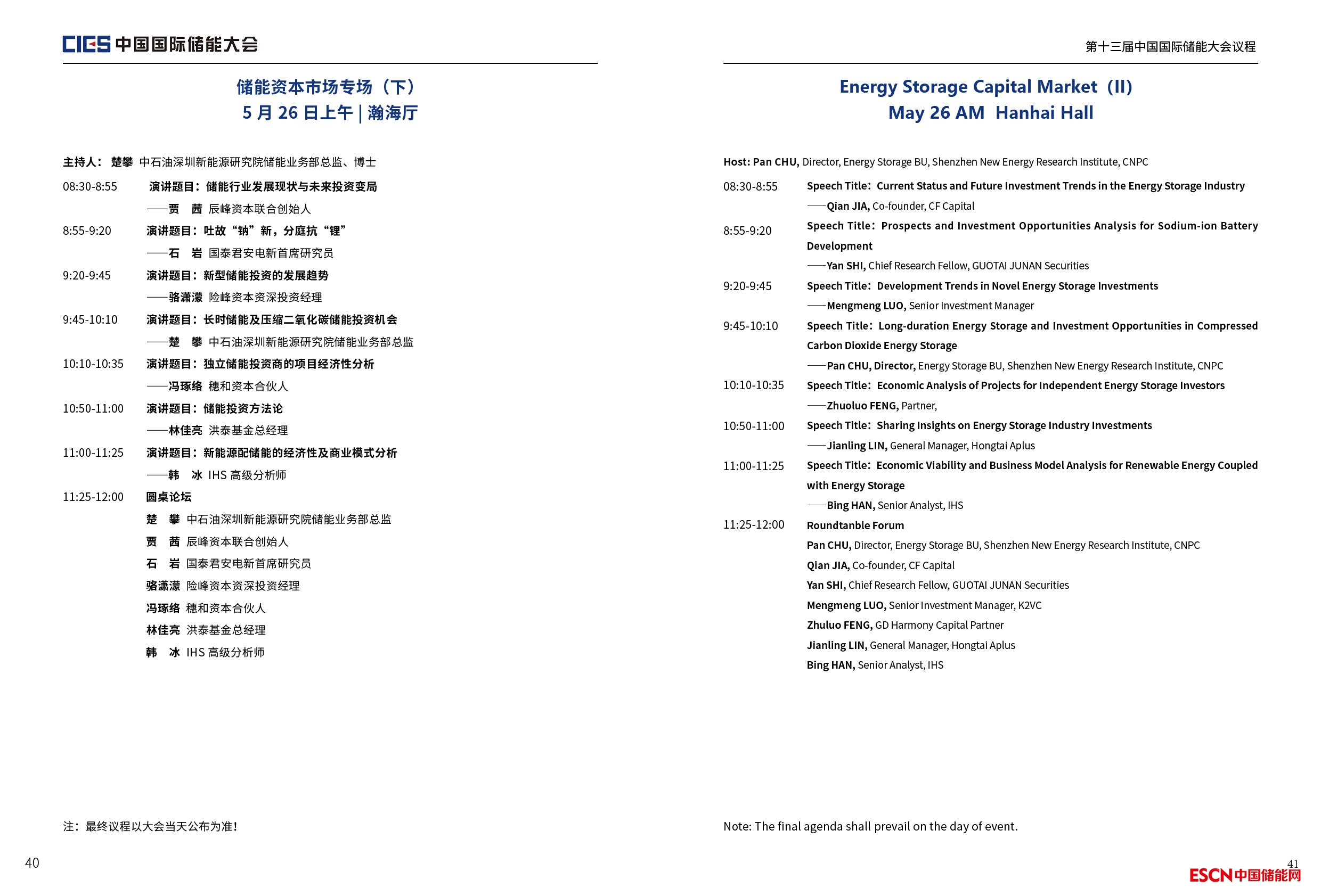 中國儲(chǔ)能網(wǎng)訊:由中國化學(xué)與物理電源行業(yè)協(xié)會(huì)主辦,中國化學(xué)與物理電源行業(yè)協(xié)會(huì)儲(chǔ)能應(yīng)用分會(huì)和中國儲(chǔ)能網(wǎng)聯(lián)合承辦,中國化學(xué)與物理電源行業(yè)協(xié)會(huì)儲(chǔ)能應(yīng)用分會(huì)專家委員會(huì)提供學(xué)術(shù)支持的第十三屆中國國際儲(chǔ)能大會(huì)將于2023年5月24-26日在杭州洲際酒店召開。以下為儲(chǔ)能資本市場專場(下)議程(最終議程以活動(dòng)當(dāng)天公布為準(zhǔn)):