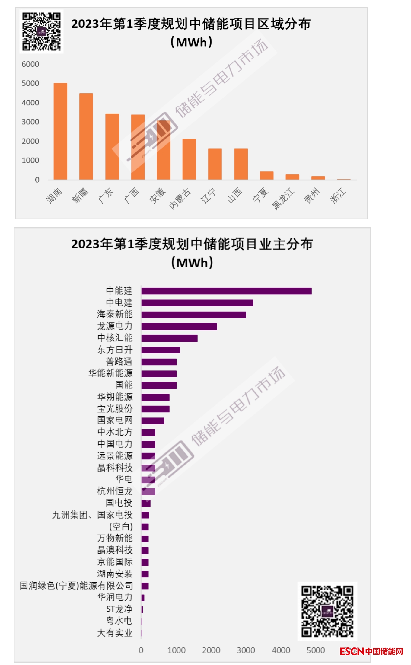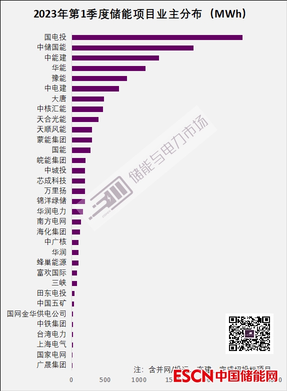 從業(yè)主分布上看,國電投儲能業(yè)務開展最多,2023年第1季度超過2.5GWh的項目更新狀態(tài),進入實施階段。