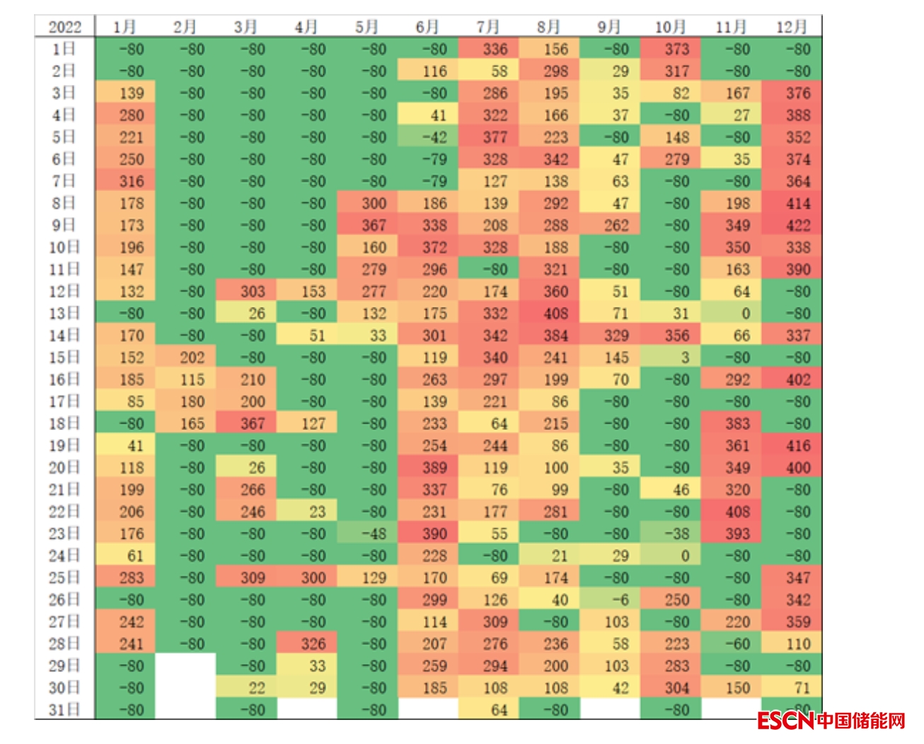 除峰谷比以外,通過該省的現(xiàn)貨市場出清價格也能看出一定端倪。據(jù)統(tǒng)計,2022年該省日前出清出現(xiàn)負(fù)價的天數(shù)達(dá)161天,這一數(shù)字與峰谷比>2的天數(shù)156天基本一致。因為火電機(jī)組不太可能會報負(fù)價,出清負(fù)價就意味著市場化火電機(jī)組全部都已經(jīng)不定價了,也就是說即使所有煤機(jī)都降至第一點出力(深調(diào)極限出力或最低技術(shù)出力)中午谷段還是過不去。風(fēng)光不能棄、外電難壓降,此時省內(nèi)火電停機(jī)幾乎就是必然的選擇。