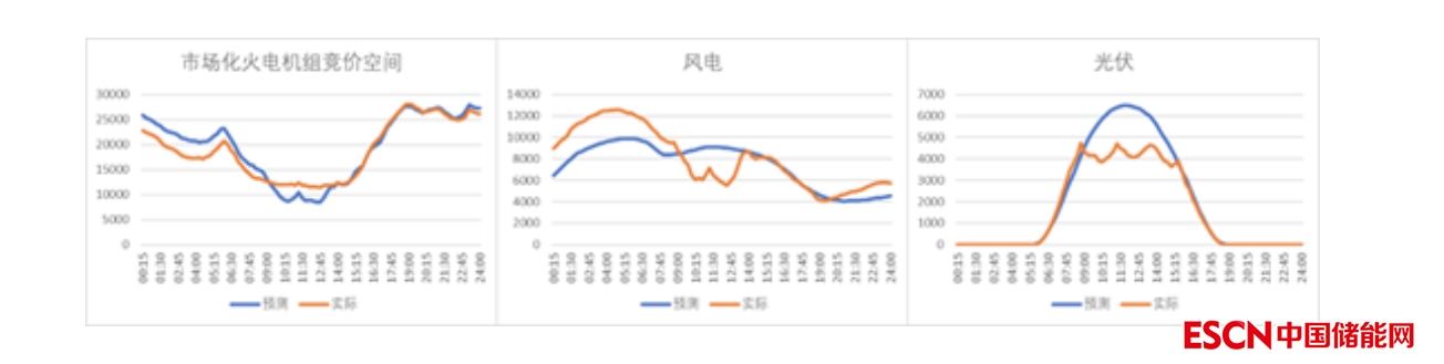 圖3 某日市場化火電機(jī)組出力空間及風(fēng)電、光伏出力預(yù)測與實際數(shù)據(jù)