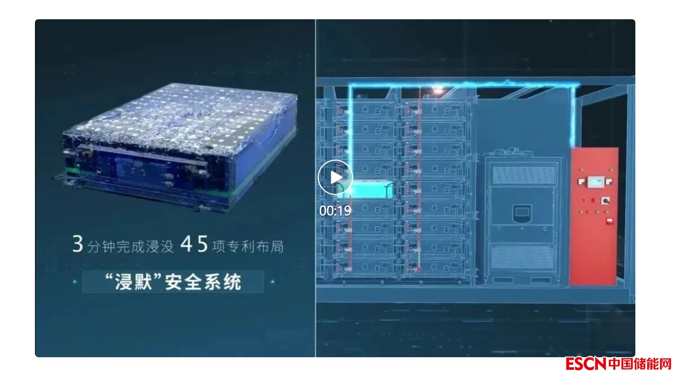 “浸默”電池安全系統(tǒng)包含“浸默”液冷PACK箱、液冷系統(tǒng)、消防系統(tǒng)、匯流柜等,一旦防爆閥開啟,可在3秒內(nèi)消防報(bào)警,10秒內(nèi)啟動(dòng)抑制動(dòng)作,3分鐘完成液態(tài)抑制劑電池包浸沒,并將電芯溫度從最高81℃降至30℃;電池模塊無熱蔓延,電芯無復(fù)燃,系統(tǒng)無其他風(fēng)險(xiǎn),最低成本解決儲(chǔ)能電池?zé)崾Э貑栴},“浸默”電池安全系統(tǒng)將儲(chǔ)能安全提升到新高度。