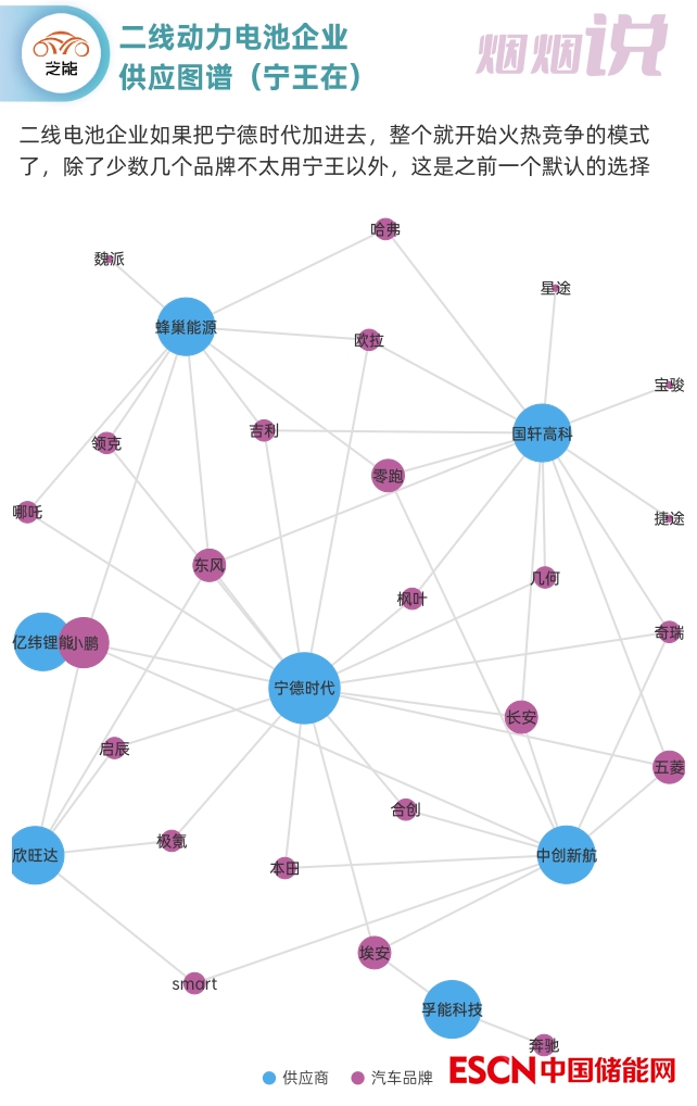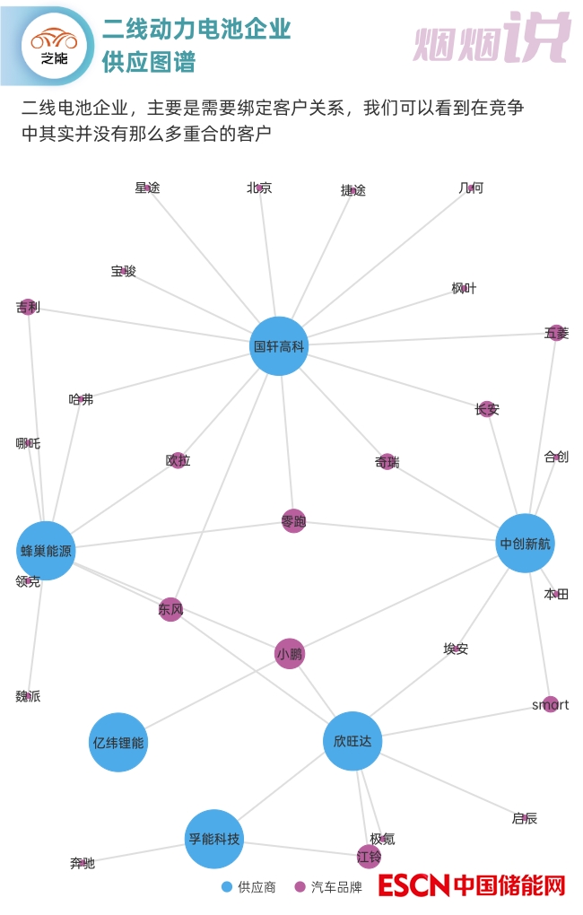 在二線動力電池企業(yè)中,主要的供應(yīng)關(guān)系包括: