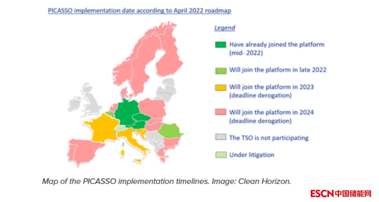 在整個(gè)歐洲,已經(jīng)有26個(gè)國(guó)家表示有興趣加入PICASSO平臺(tái),每個(gè)國(guó)家都有自己的時(shí)間表,如下圖所示。下面以德國(guó)為例,看一下歐洲二級(jí)儲(chǔ)備市場(chǎng)的開放情況。