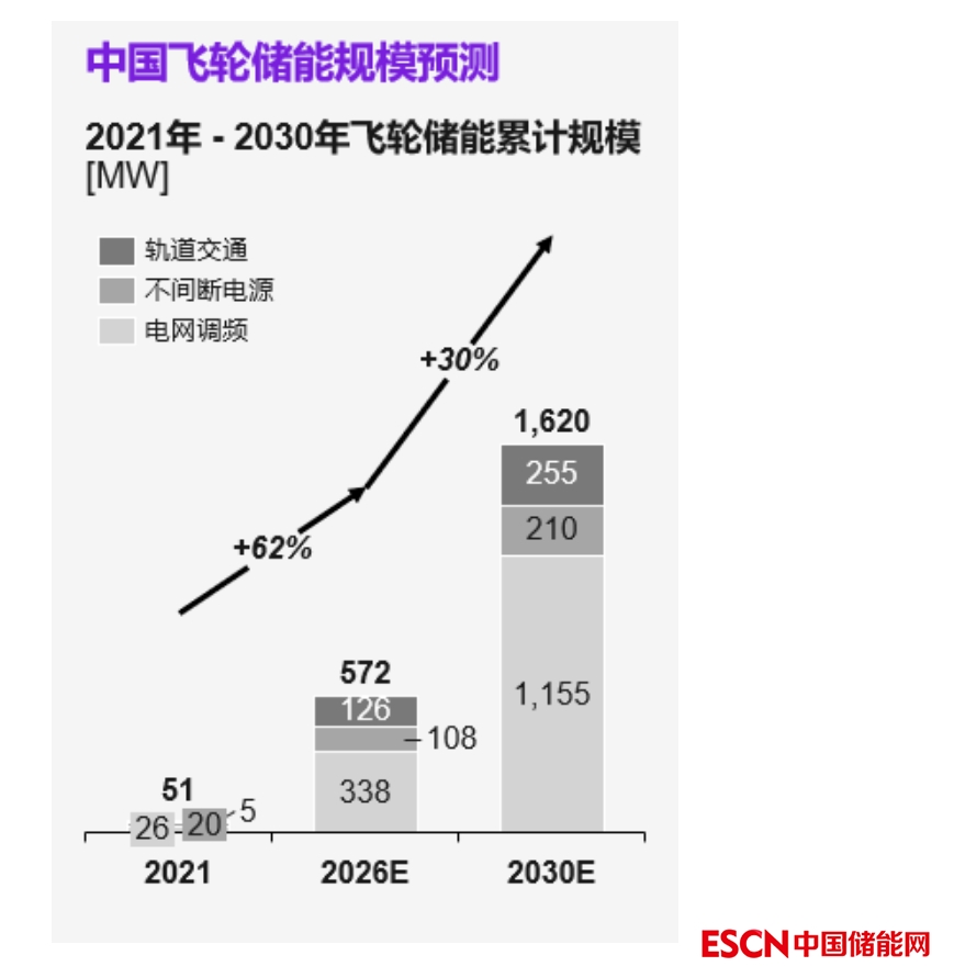 中國儲能網(wǎng)訊:科爾尼中性測算,到2026年飛輪儲能累計裝機量可增長至572MW,到2030年可進一步增長至1.62GW。