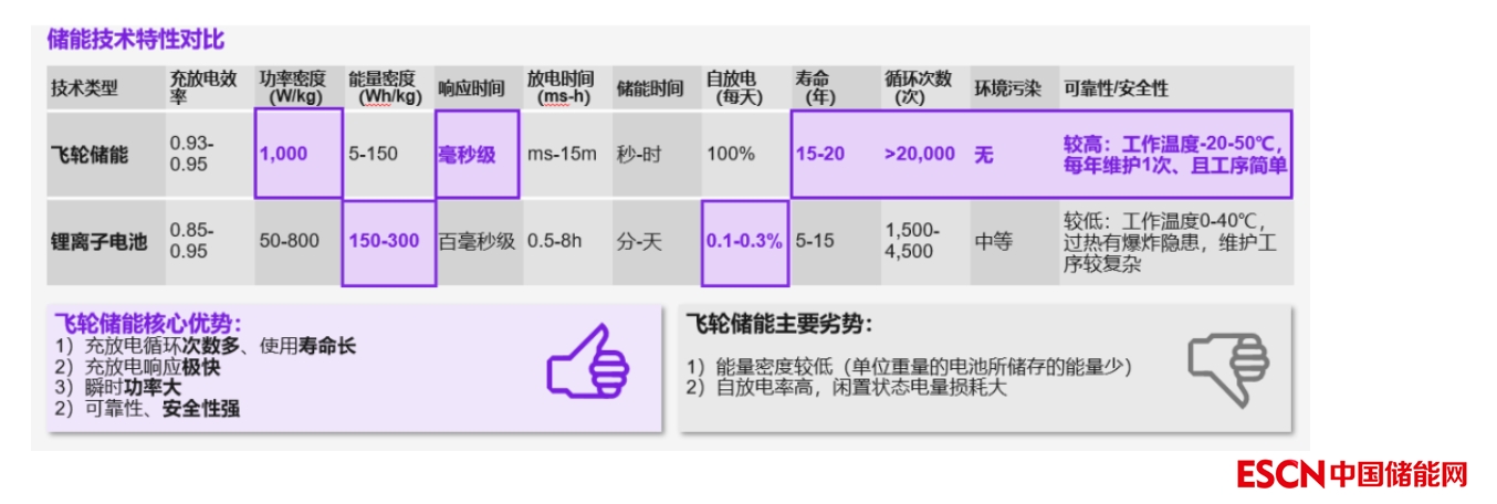 圖3 飛輪儲能與鋰離子電池儲能技術(shù)指標(biāo)對比