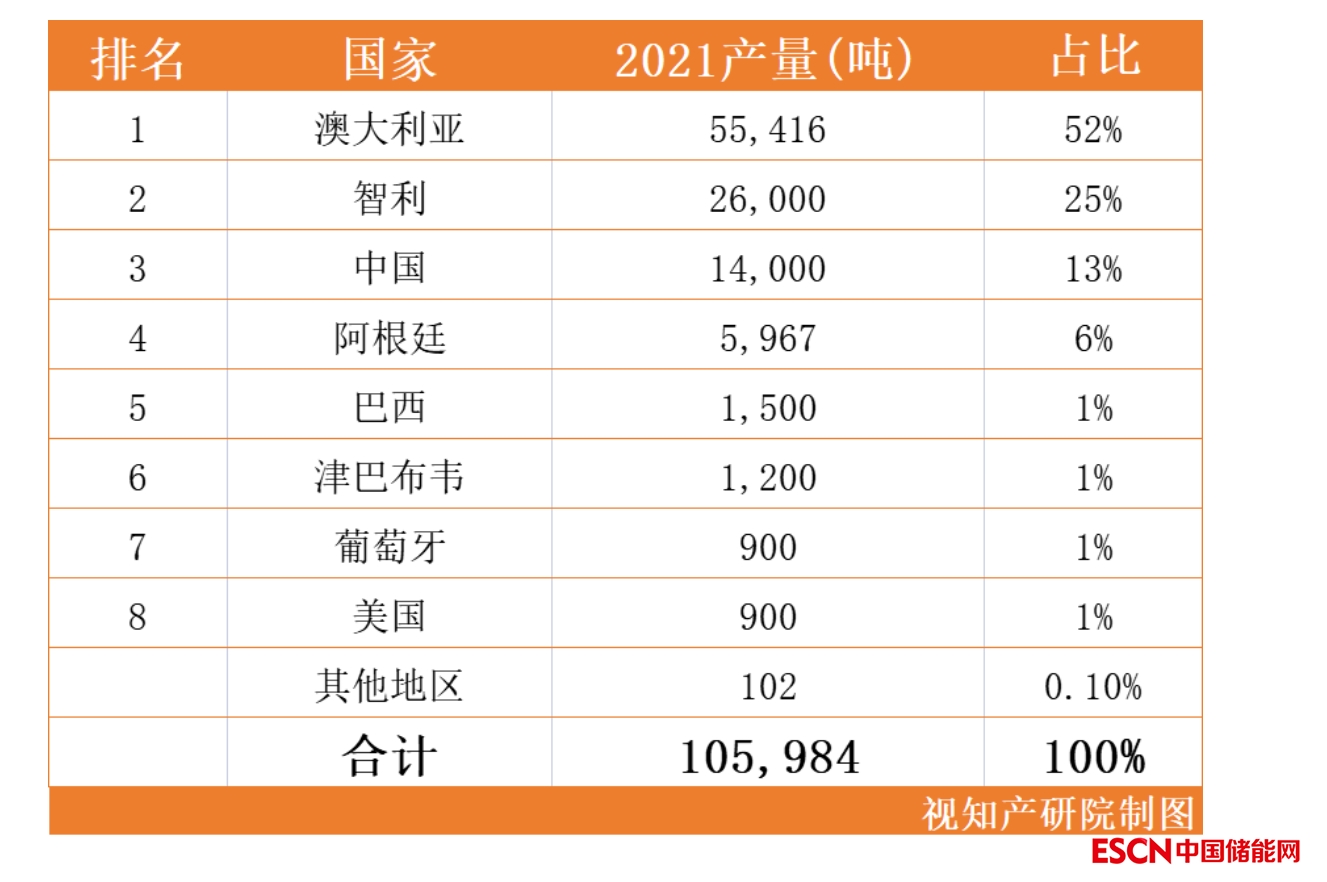 2021年,全球鋰產(chǎn)量首次超過100,000噸,是2010年的四倍,其中大約90%來自三個(gè)國(guó)家。其中,澳大利亞生產(chǎn)了世界上52%的鋰,排名第一。
