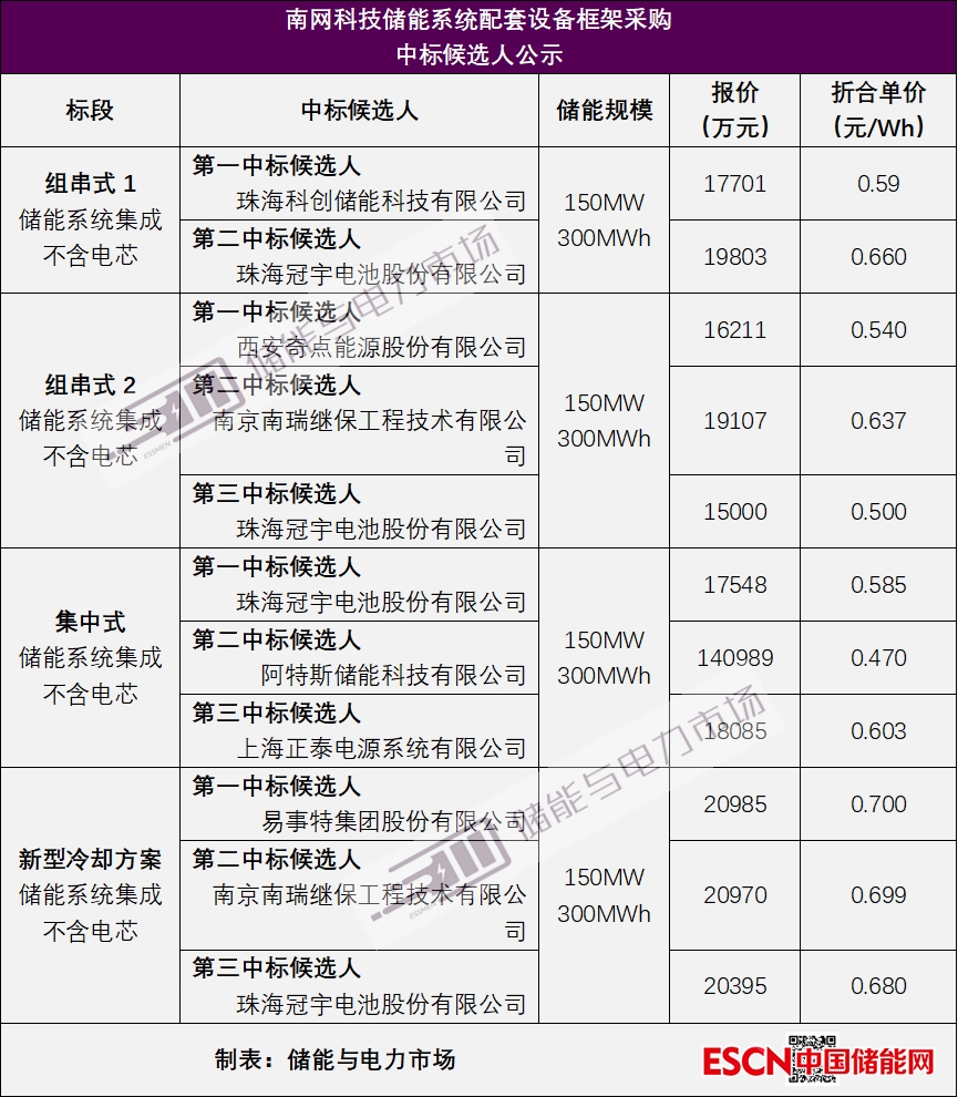 與此同時(shí),日前開(kāi)標(biāo)的南網(wǎng)科技儲(chǔ)能系統(tǒng)配套設(shè)備框架采購(gòu)項(xiàng)目中,不含電芯的儲(chǔ)能系統(tǒng)集成,0.5C系統(tǒng)組串式最低報(bào)價(jià)為0.5元/Wh,集中式最低報(bào)價(jià)為0.47元/Wh。