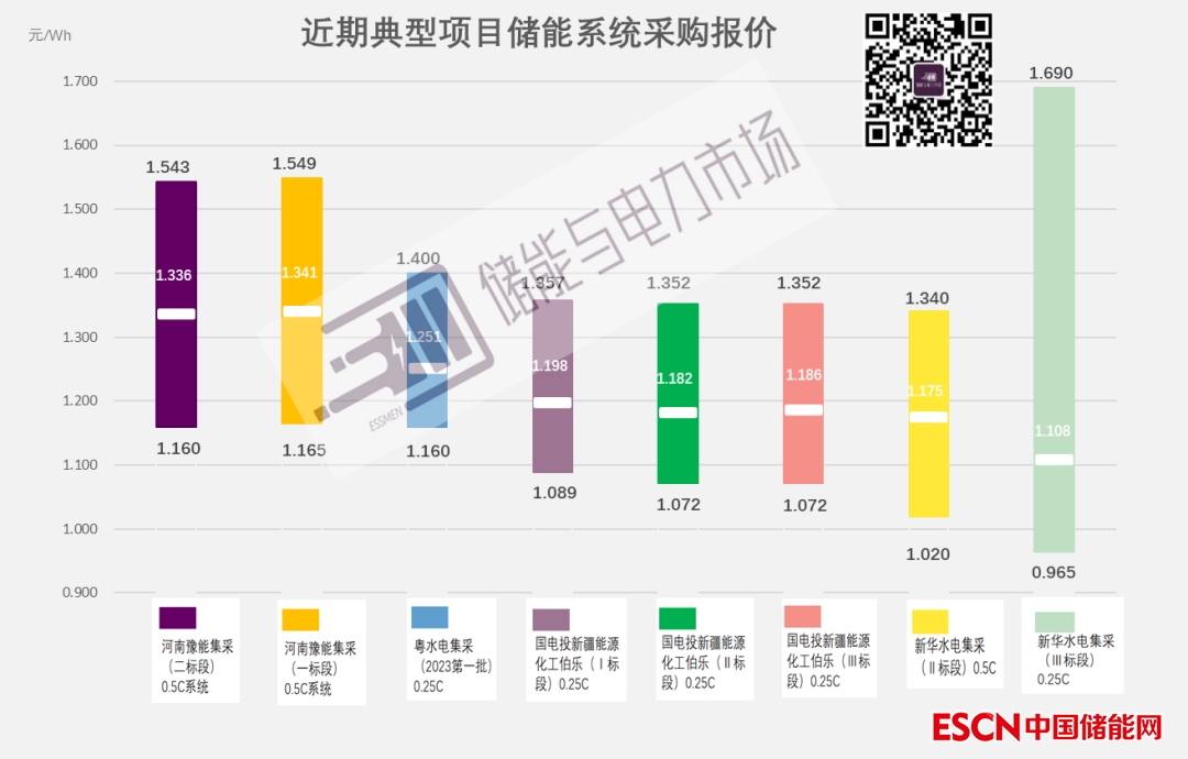 0.5C儲(chǔ)能系統(tǒng)最低報(bào)價(jià)1.02元/Wh,0.25C儲(chǔ)能系統(tǒng)最低報(bào)價(jià)0.965元/Wh。