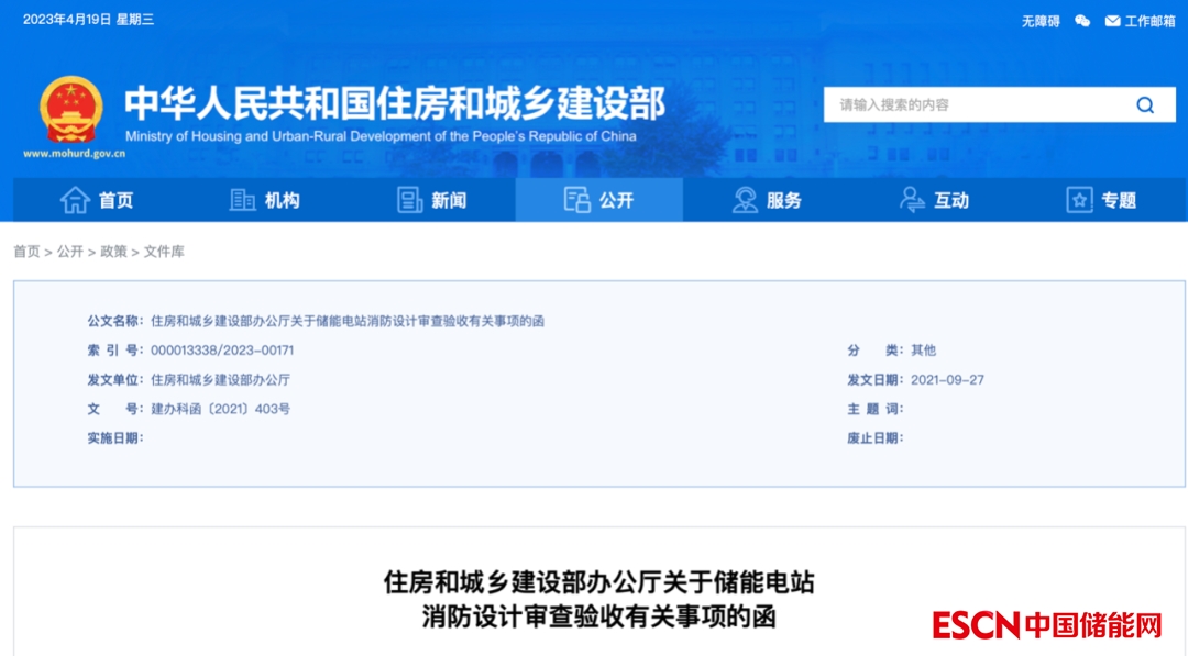 中國儲能網(wǎng)訊:4月18日,住建部公布回復(fù)廣東住建廳《關(guān)于明確儲能電站消防設(shè)計審查驗收有關(guān)事項的請示》的函。