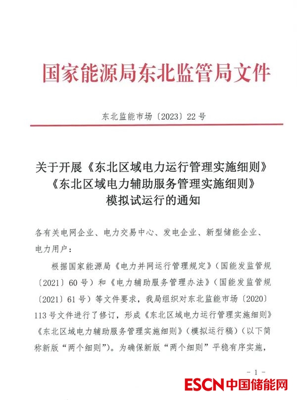 中國(guó)儲(chǔ)能網(wǎng)訊:4月14日,東北能監(jiān)局印發(fā)《東北區(qū)域電力運(yùn)行管理實(shí)施細(xì)則(模擬運(yùn)行稿)》《東北區(qū)域電力輔助服務(wù)管理實(shí)施細(xì)則(模擬運(yùn)行稿)》。