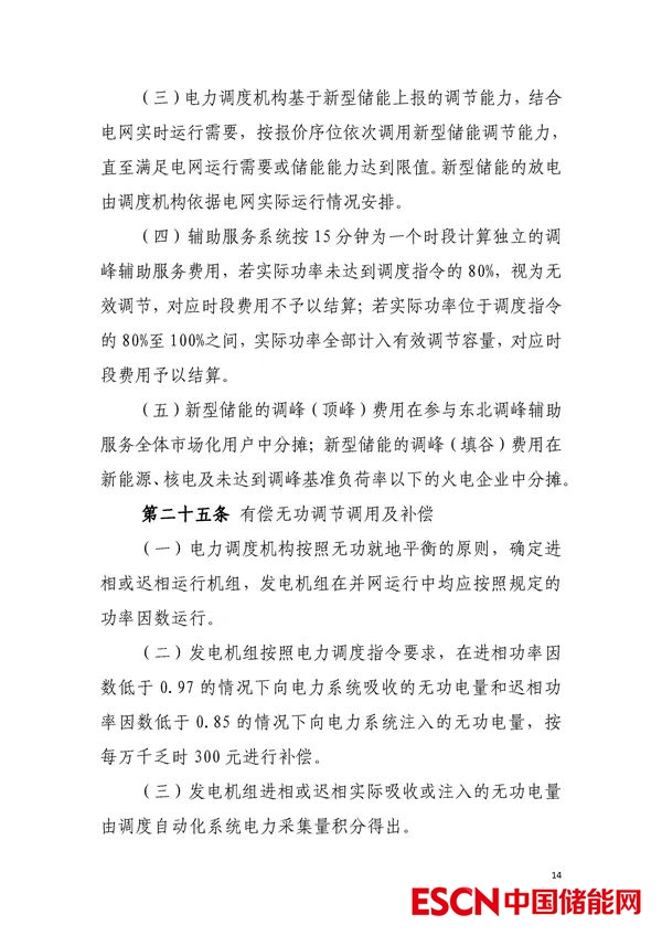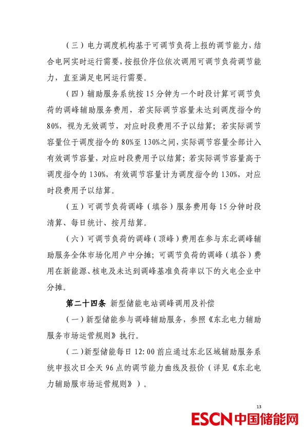新型儲(chǔ)能參與調(diào)峰輔助服務(wù),參照《東北電力輔助服務(wù)市場(chǎng)運(yùn)營(yíng)規(guī)則》執(zhí)行。新型儲(chǔ)能的調(diào)峰(頂峰)費(fèi)用在參與東北調(diào)峰輔助服務(wù)全體市場(chǎng)化用戶中分?jǐn)偅恍滦蛢?chǔ)能的調(diào)峰(填谷)費(fèi)用在新能源、核電及未達(dá)到調(diào)峰基準(zhǔn)負(fù)荷率以下的火電企業(yè)中分?jǐn)偂?