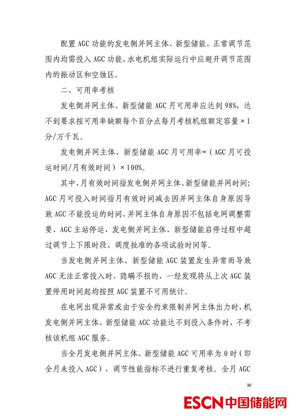 發(fā)電側(cè)并網(wǎng)主體、新型儲(chǔ)能提供AGC服務(wù),按可用時(shí)間及AGC服務(wù)貢獻(xiàn)分別進(jìn)行補(bǔ)償。針對(duì)新型儲(chǔ)能,如果AGC可用率達(dá)到98%以上,按AGC可用時(shí)間每臺(tái)次(電站)每小時(shí)補(bǔ)償20元。根據(jù)AGC調(diào)整電量,每萬(wàn)千瓦時(shí)補(bǔ)償1200元。AGC服務(wù)所需補(bǔ)償費(fèi)用由發(fā)電企業(yè)、新型儲(chǔ)能企業(yè)和電力用戶共同分?jǐn)偂?
