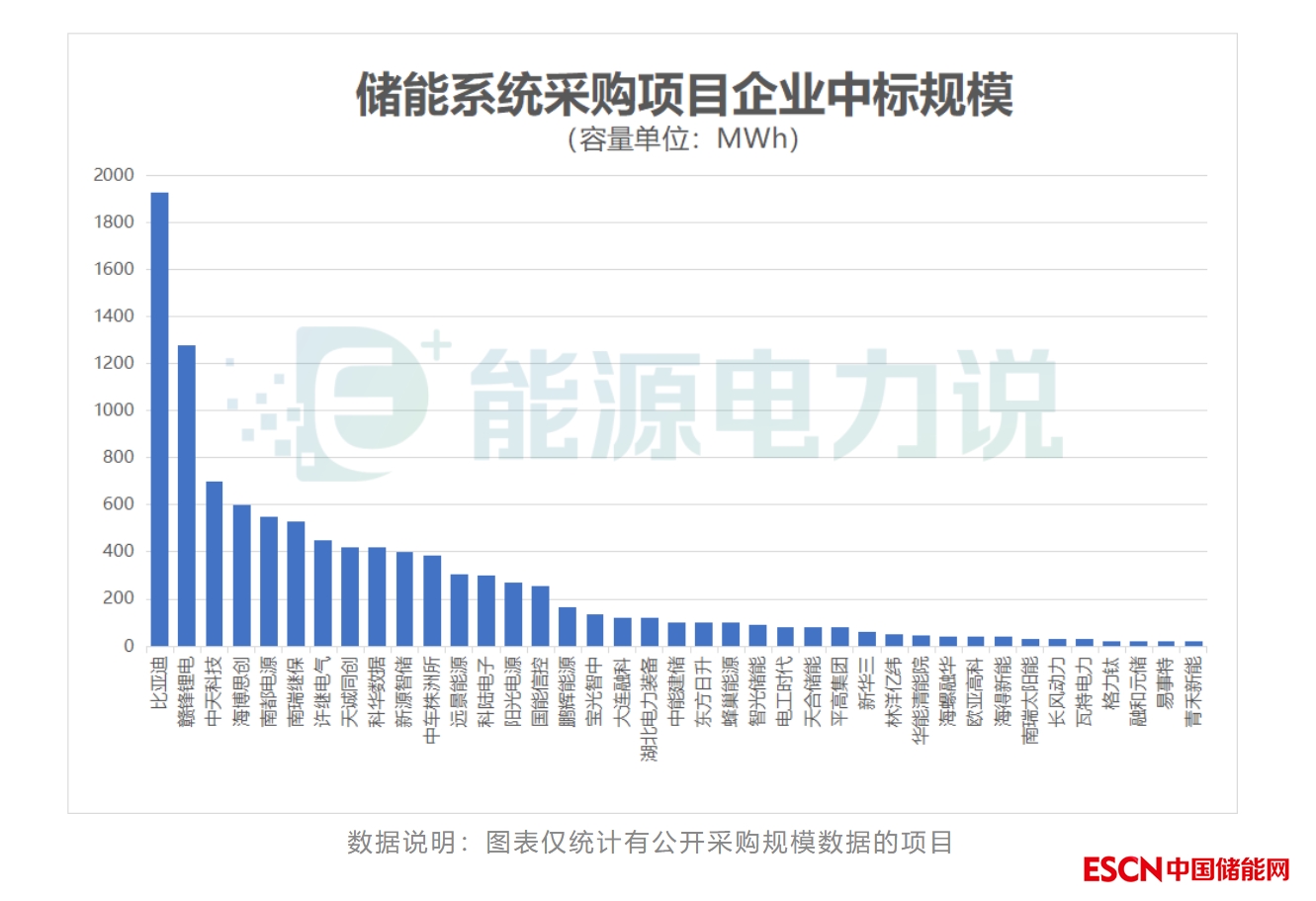 從中標(biāo)規(guī)模上看,比亞迪位榜首,中標(biāo)規(guī)模超2GWh,贛鋒鋰電中標(biāo)規(guī)模超1GWh,此外中天科技、海博思創(chuàng)、南都電源、南瑞繼保等均有不錯的成績。