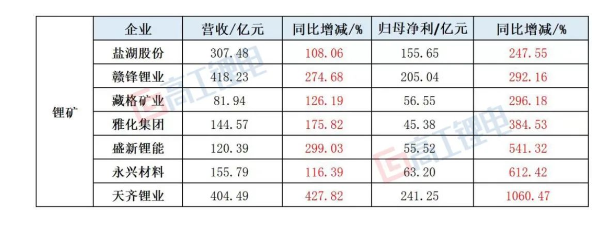 這也造就了鋰礦“盛世”,鋰礦企業(yè)業(yè)績(jī)集體爆發(fā)。