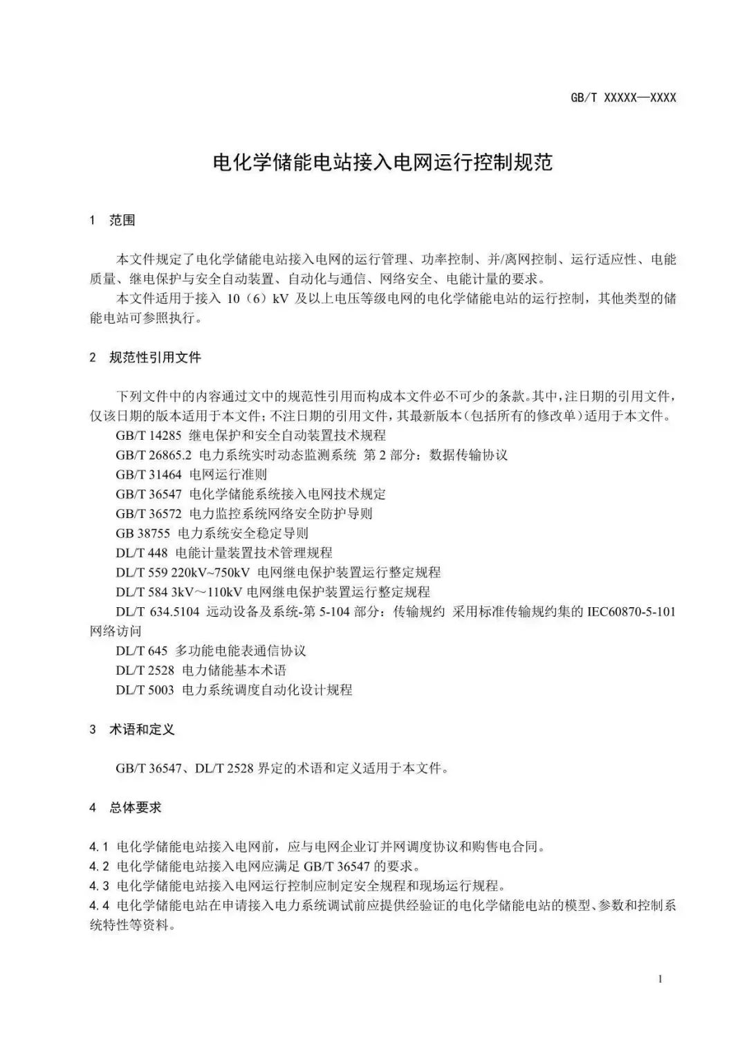 《電化學(xué)儲(chǔ)能電站接入電網(wǎng)運(yùn)行控制規(guī)范》