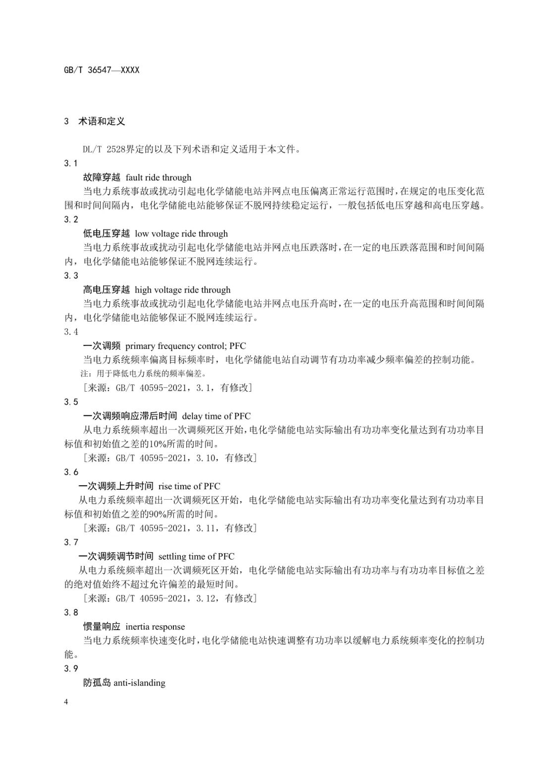 1.適用范圍:本文件規(guī)定了電化學(xué)儲(chǔ)能電站接入電網(wǎng)的功率控制、一次調(diào)頻、慣量響應(yīng)、故障穿越、電網(wǎng)適應(yīng)性、電能質(zhì)量、保護(hù)與安全自動(dòng)裝置、調(diào)度自動(dòng)化與通信、仿真模型和參數(shù)等要求,規(guī)定了接入電網(wǎng)測(cè)試等內(nèi)容。