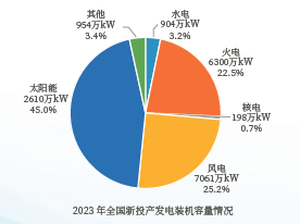 新投產(chǎn)裝機(jī)規(guī)模有望連續(xù)第二年創(chuàng)歷史新高。預(yù)計(jì)2023年全國新投產(chǎn)發(fā)電裝機(jī)容量2.8億千瓦,比上年增長40.3%,連續(xù)兩年創(chuàng)歷史新高。其中,水電新投產(chǎn)904萬千瓦,比上年減少62.1%;火電新投產(chǎn)6300萬千瓦,為2016年以來新高,比上年增長40.9%;核電新投產(chǎn)198萬千瓦,比上年減少13.1%;風(fēng)電新投產(chǎn)7061萬千瓦,比上年增長87.6%,新投產(chǎn)裝機(jī)容量僅次于2020年;太陽能新投產(chǎn)1.3億千瓦,比上年增長44.3%,創(chuàng)歷史新高;新型儲(chǔ)能新投產(chǎn)954萬千瓦,比上年增長約1.5倍。
