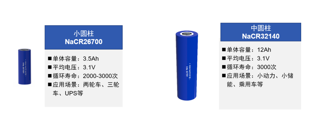 前段時間,中科海鈉陸續(xù)推出了四款鈉電池產(chǎn)品。其中兩款圓柱電池,小圓柱NaCR26700、中圓柱NaCR32140,單體容量分別是3.5Ah是12Ah,基本上是磷酸鐵鋰能量密度的80%。