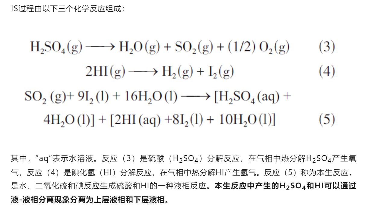 水的直接熱分解需要幾千度的高溫。熱化學(xué)循環(huán)是通過結(jié)合各種化學(xué)反應(yīng)在更實用的1000 ℃或更低的溫度水平下熱分解水的方法。作為熱化學(xué)循環(huán)的示例,碘硫(IS)工藝(也稱為SI工藝)和混合硫工藝的硫族循環(huán)如下所述。