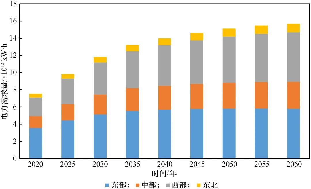 圖2 我國部分地區(qū)電力需求增長趨勢(2020—2060年)