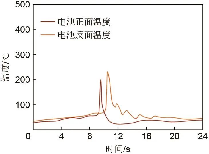 圖9 熱失控電池表面溫度曲線(xiàn)