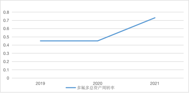 圖5 2019年~2021年多氟多總資產(chǎn)周轉(zhuǎn)率的變動(dòng)情況