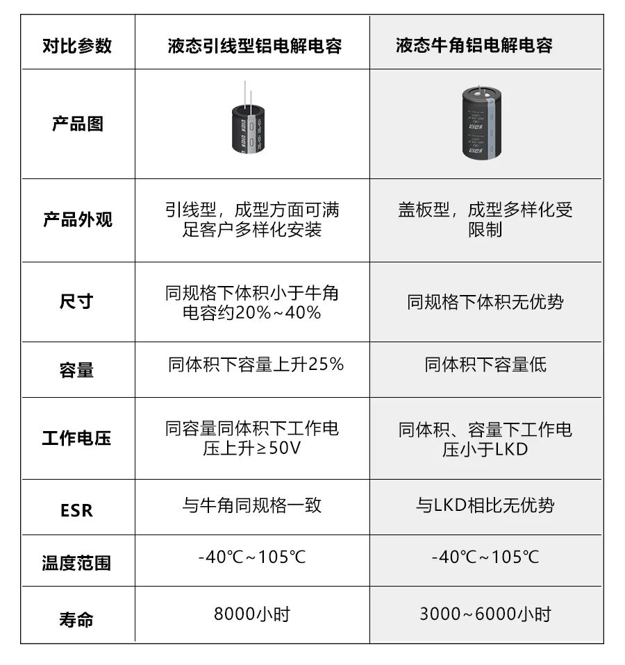 本次推出的LKD系列超大容量高壓鋁電解電容,該系列在同電壓、同容量、同規(guī)格的情況下,直徑和高度比牛角產(chǎn)品各小20%,高度不變直徑可小40%。在縮小體積的同時(shí),耐紋波能力卻是一點(diǎn)也不遜色于同電壓、容量的液態(tài)牛角鋁電解電容,甚至可以與日系標(biāo)準(zhǔn)體積媲美,而且壽命反而是牛角電容的2倍以上!此外,LKD系列超大容量高壓鋁電解電容的成品耐壓高,同規(guī)格的產(chǎn)品成品耐壓高于日系品牌約30~40V。