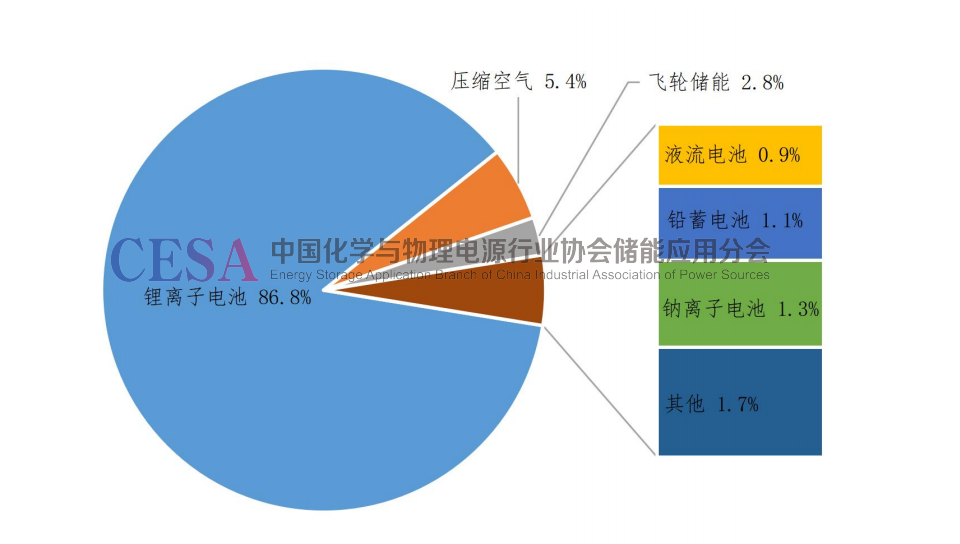 5.2022年中國(guó)新型儲(chǔ)能新增裝機(jī)中鋰離子電池占比為90.7%