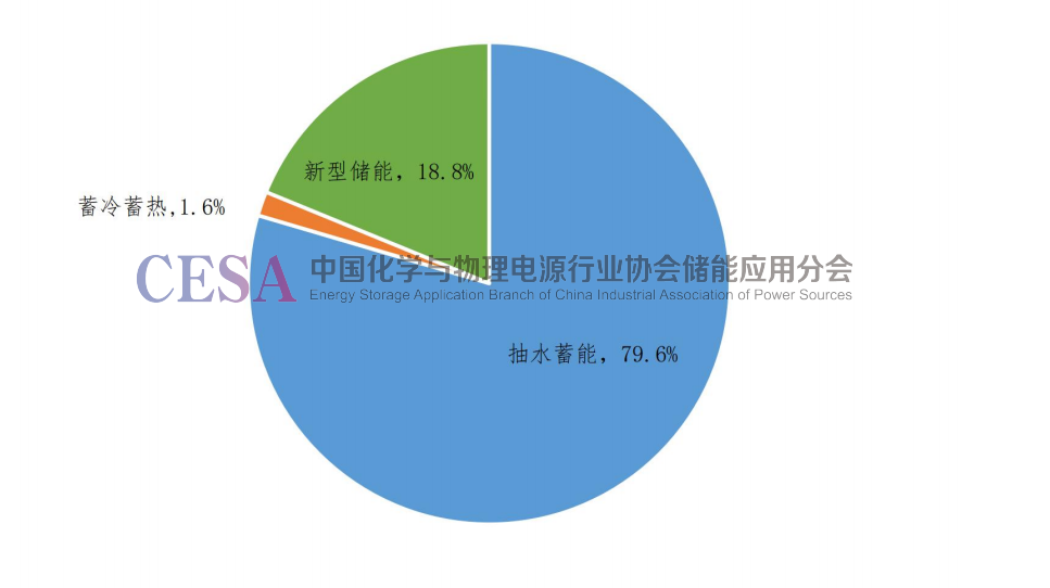 2022年全球儲(chǔ)能累計(jì)裝機(jī)功率約245.5GW,其中:新型儲(chǔ)能累計(jì)裝機(jī)量約46.2GW,占比為18.8%;抽水蓄能累計(jì)裝機(jī)量約195.3GW,占比為79.6%;蓄冷蓄熱累計(jì)裝機(jī)量約4.0GW,占比為1.6%。