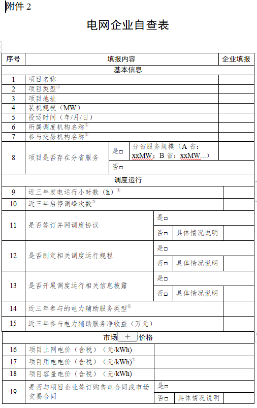 1.發(fā)電(儲(chǔ)能)企業(yè)自查表