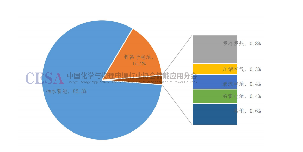 圖3 2022年全球儲能累計(jì)裝機(jī)技術(shù)分布情況