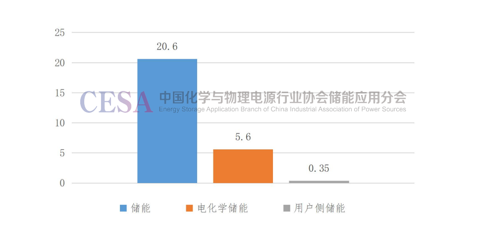 2022年中國儲能市場新增裝機(jī)功率為20.6GW,其中電化學(xué)儲能新增裝機(jī)功率約為5.6GW。用戶側(cè)儲能新增裝機(jī)功率約為0.35GW。