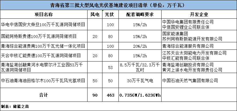 第三批大基地項(xiàng)目開發(fā)企業(yè)包括華電、中石油、國家能源集團(tuán)、中核匯能等。