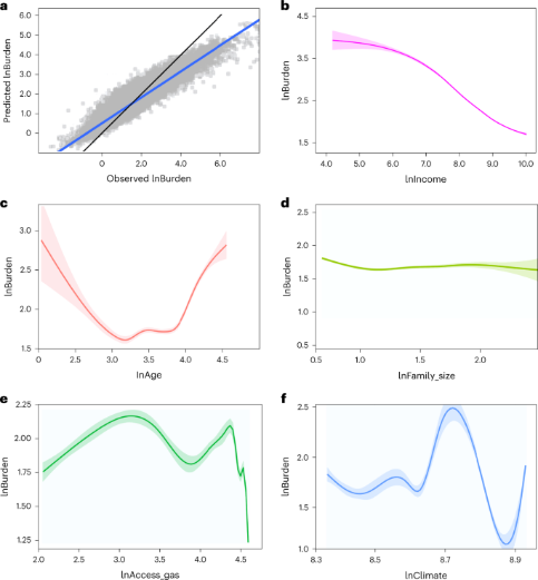 文章通過線性回歸模型、隨機(jī)森林模型等方式對家庭能源負(fù)擔(dān)不平等的影響因素進(jìn)行了分析,包括收入、非農(nóng)就業(yè)、平均年齡、城鄉(xiāng)分異等因素。
