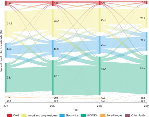 圖1 2011年至2017年的家庭能源轉(zhuǎn)型