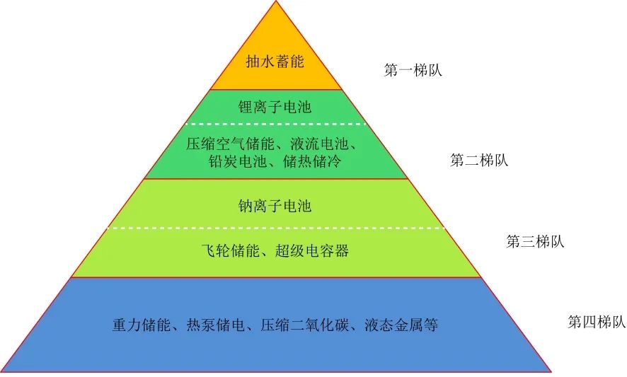 綜合分析各儲(chǔ)能技術(shù)2022年的基礎(chǔ)研究、關(guān)鍵技術(shù)和集成示范的情況,各種儲(chǔ)能技術(shù)仍可以大致分為四個(gè)梯隊(duì),和2021年基本一致。其中,第一梯隊(duì)為抽水蓄能,單機(jī)規(guī)模100 MW以上,占2022年全國(guó)儲(chǔ)能裝機(jī)的77.1%左右;第二梯隊(duì)為鋰離子電池、壓縮空氣儲(chǔ)能、液流電池、鉛蓄電池和儲(chǔ)熱儲(chǔ)冷技術(shù),單機(jī)規(guī)??蛇_(dá)10~100 MW,其中鋰離子電池裝機(jī)最多,有可能未來(lái)形成單獨(dú)的一個(gè)梯隊(duì);第三梯隊(duì)為鈉離子電池、飛輪儲(chǔ)能和超級(jí)電容器,目前單機(jī)規(guī)模可以達(dá)到MW級(jí),其中鈉離子發(fā)展受關(guān)注最多,有可能未來(lái)進(jìn)入第二梯隊(duì);第四梯隊(duì)為重力儲(chǔ)能、熱泵儲(chǔ)電、壓縮二氧化碳和液態(tài)金屬技術(shù)等新型儲(chǔ)能技術(shù),需要進(jìn)一步的研發(fā),以便實(shí)現(xiàn)集成示范和產(chǎn)業(yè)化應(yīng)用。