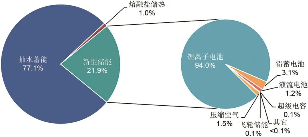 (2)化學(xué)儲(chǔ)能方面:在鉛蓄電池方面,技術(shù)研發(fā)主要集中于鉛碳電池,主要研究方向?yàn)樨?fù)極材料、正極材料和電解液等,從而提升電池的壽命、能量密度和充放性能等;目前鉛蓄電池儲(chǔ)能主要應(yīng)用為用戶側(cè)儲(chǔ)能和通訊基站儲(chǔ)能等。在鋰離子電池方面,我國(guó)在液態(tài)電解質(zhì)鋰離子電池研究保持活躍并開始大規(guī)模應(yīng)用的同時(shí),固態(tài)半固態(tài)鋰離子電池成為新的熱點(diǎn);鋰補(bǔ)償技術(shù)、超大電池技術(shù)、液冷儲(chǔ)能技術(shù)是今年的技術(shù)進(jìn)展亮點(diǎn),硫基電池、錳基電池等新型鋰電池技術(shù)也不斷涌現(xiàn)。在液流電池方面,全釩液流電池仍為當(dāng)前液流電池主流技術(shù),今年取得了里程碑式進(jìn)展,實(shí)現(xiàn)了100 MW級(jí)系統(tǒng)并網(wǎng)發(fā)電;提高電堆功率密度、離子傳導(dǎo)膜國(guó)產(chǎn)化等問(wèn)題,是當(dāng)前研究的重點(diǎn),同時(shí)也在積極探索鋅溴、鐵鉻、鋅鐵等液流電池新體系。在鈉離子電池方面,今年我國(guó)鈉離子電池迎來(lái)歷史發(fā)展機(jī)遇,是儲(chǔ)能行業(yè)的熱點(diǎn)領(lǐng)域;正負(fù)極材料研究和工藝路線研究活躍,多家企業(yè)已開展大規(guī)模產(chǎn)業(yè)化布局。在超級(jí)電容器方面,基礎(chǔ)研究、單體制備、成組管控、系統(tǒng)集成與應(yīng)用等方面取得了重要進(jìn)展;實(shí)現(xiàn)了在新能源發(fā)電、軌道交通、輪船動(dòng)力等領(lǐng)域的示范應(yīng)用;鋰離子超級(jí)電容、高電壓耐熱性技術(shù)、超級(jí)電容混合儲(chǔ)能技術(shù)是當(dāng)前的研究熱點(diǎn)。在新型儲(chǔ)能技術(shù)方面,研究熱點(diǎn)在于重力儲(chǔ)能、熱泵儲(chǔ)電、壓縮二氧化碳、液態(tài)金屬電池、有機(jī)電池、雙離子電池等。