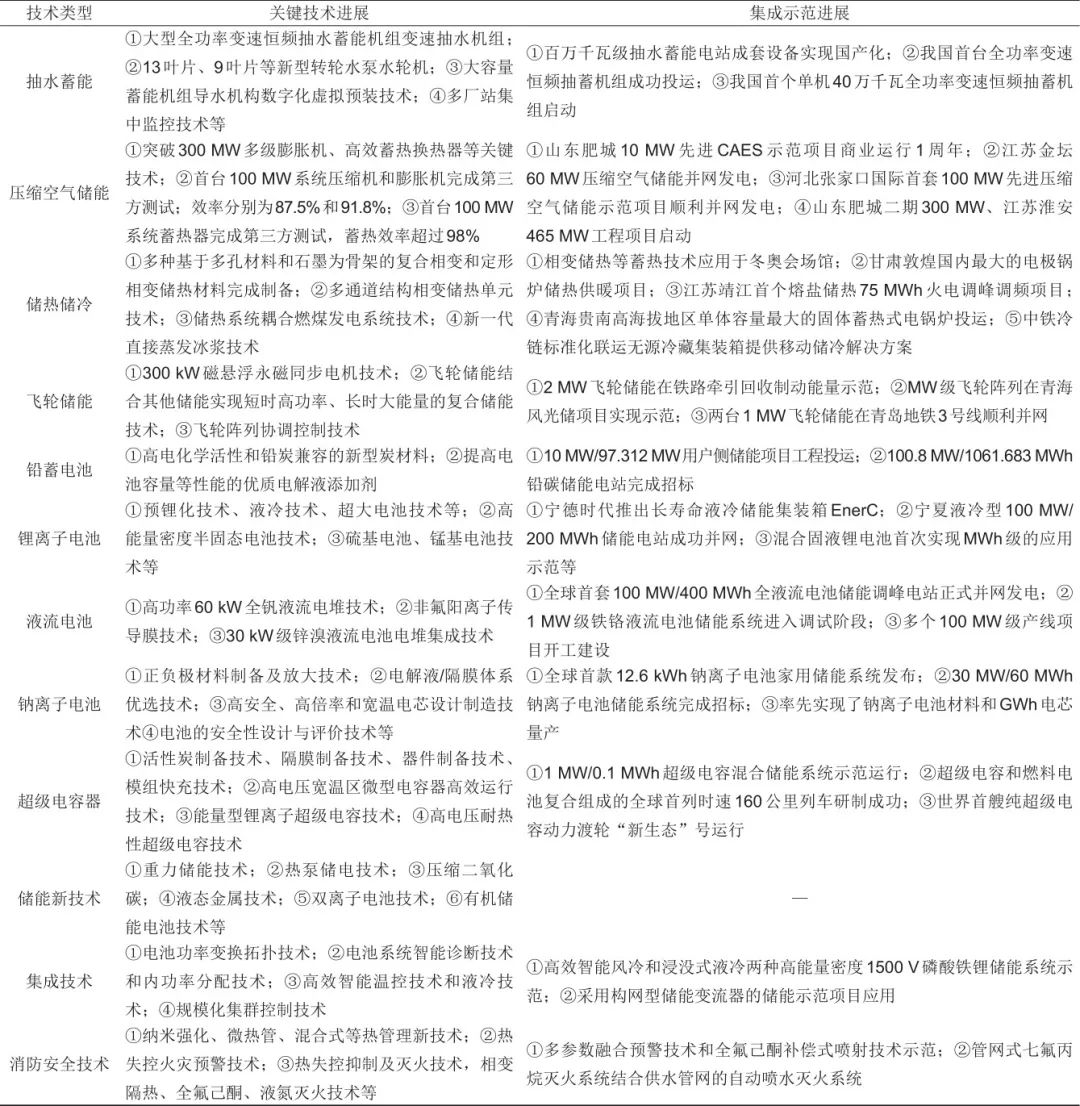 表1 2022年中國(guó)儲(chǔ)能關(guān)鍵技術(shù)與示范進(jìn)展