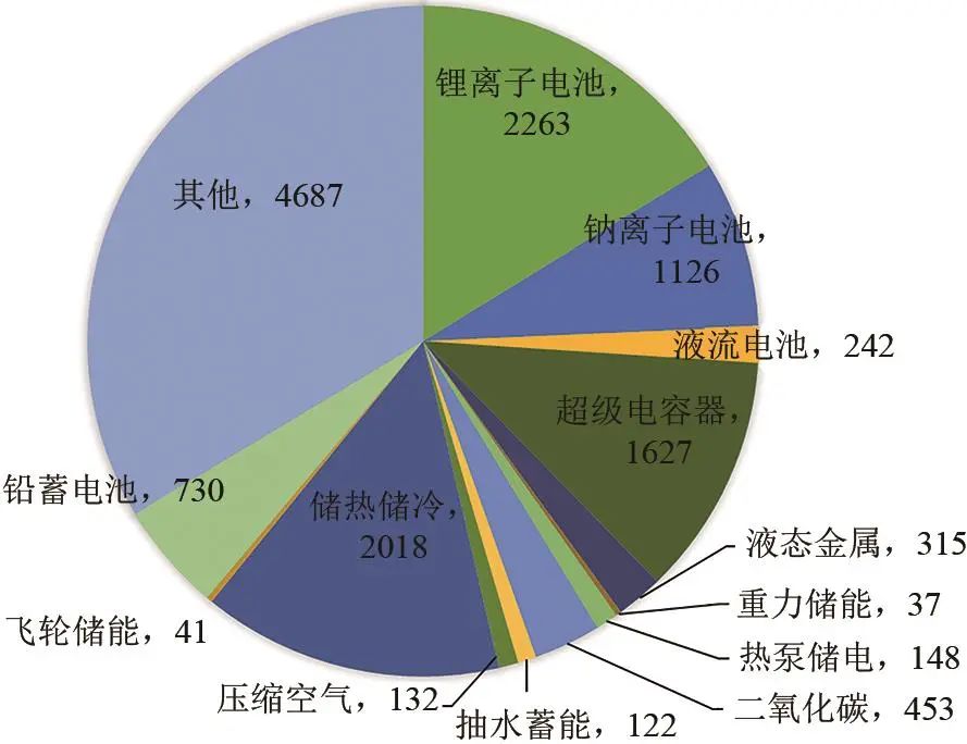 圖1 2022年中國(guó)主要儲(chǔ)能技術(shù)發(fā)表SCI論文數(shù)