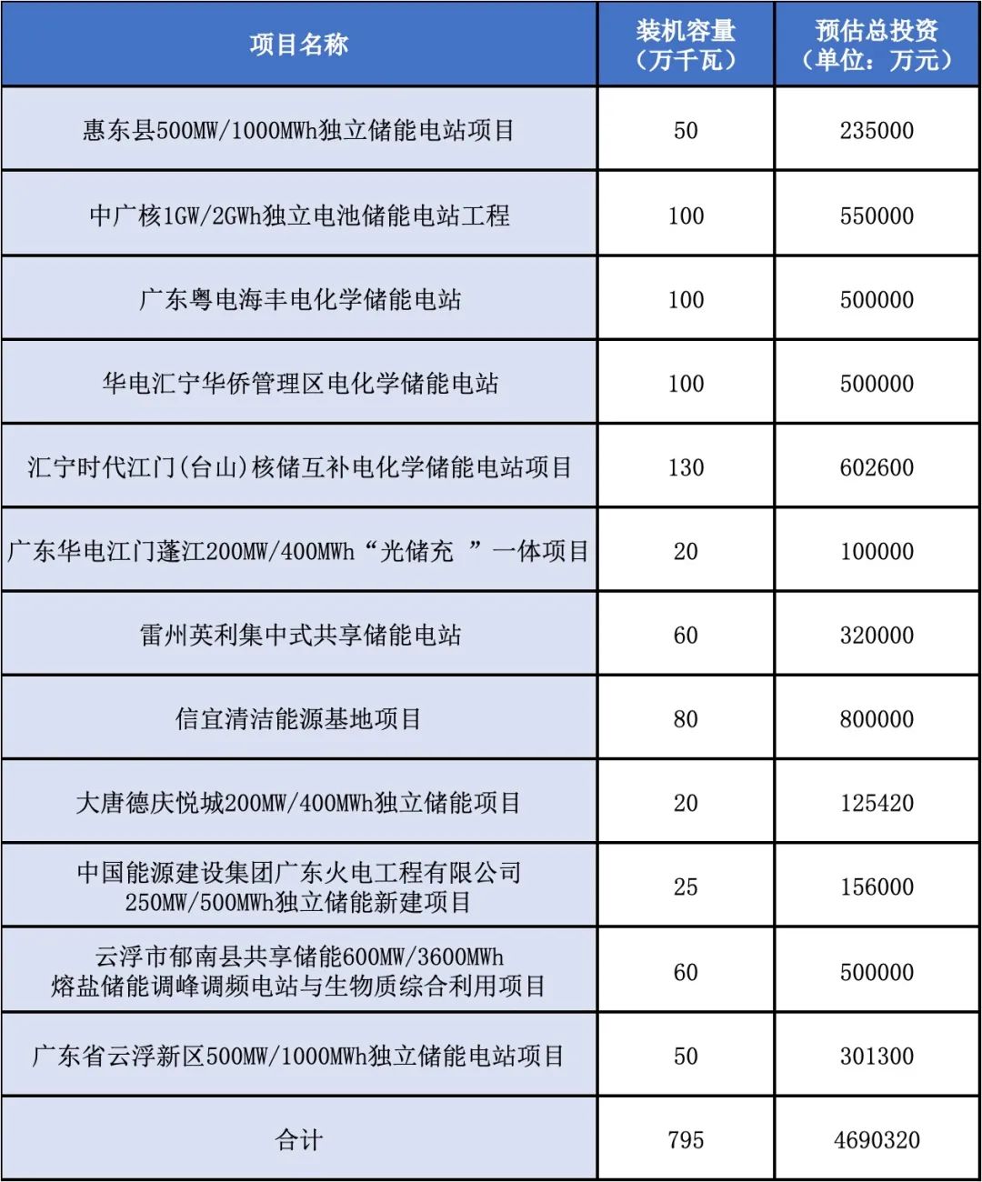 《廣東省2023年重點(diǎn)建設(shè)項目計劃表》中的新型儲能項目